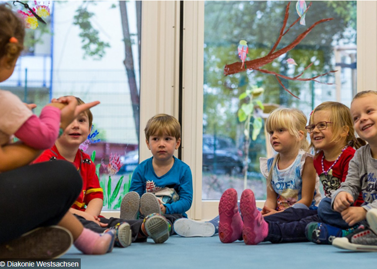 Herzlich Willkommen bei der Kindertagesstätte Grüner Hof | Diakonie Westsachsen! Eine Orientierung am Leben des Kirchenjahres prägt die Arbeit in unserer Kindertagesstätte – genauso wie die christlichen Werte, die im Umgang miteinander vermittelt werden. Nicht nur bei dem pädagogischen Konzept und den räumlichen Bedingungen setzt das neue Haus Akzente, sondern auch in Bezug auf die Barrierefreiheit. Ein abwechslungsreich gestaltetes Außengelände ermöglicht vielfältiges und naturnahes Spielen. Jeder Gruppenraum bietet unterschiedliche Spielanreize, zum Beispiel Verkleiden-Präsentieren-Schauspielen, Bauen-Forschen-Verstecken und Kreativität-Kunst. Die Kindertagesstätte bietet innerhalb der 86 Plätze auch sechs Integrativplätze.